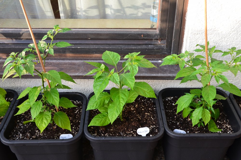 Rocotos sehen auch OK aus. Ein wenig kräftiger könnten sie werden. Blüten beginnen.