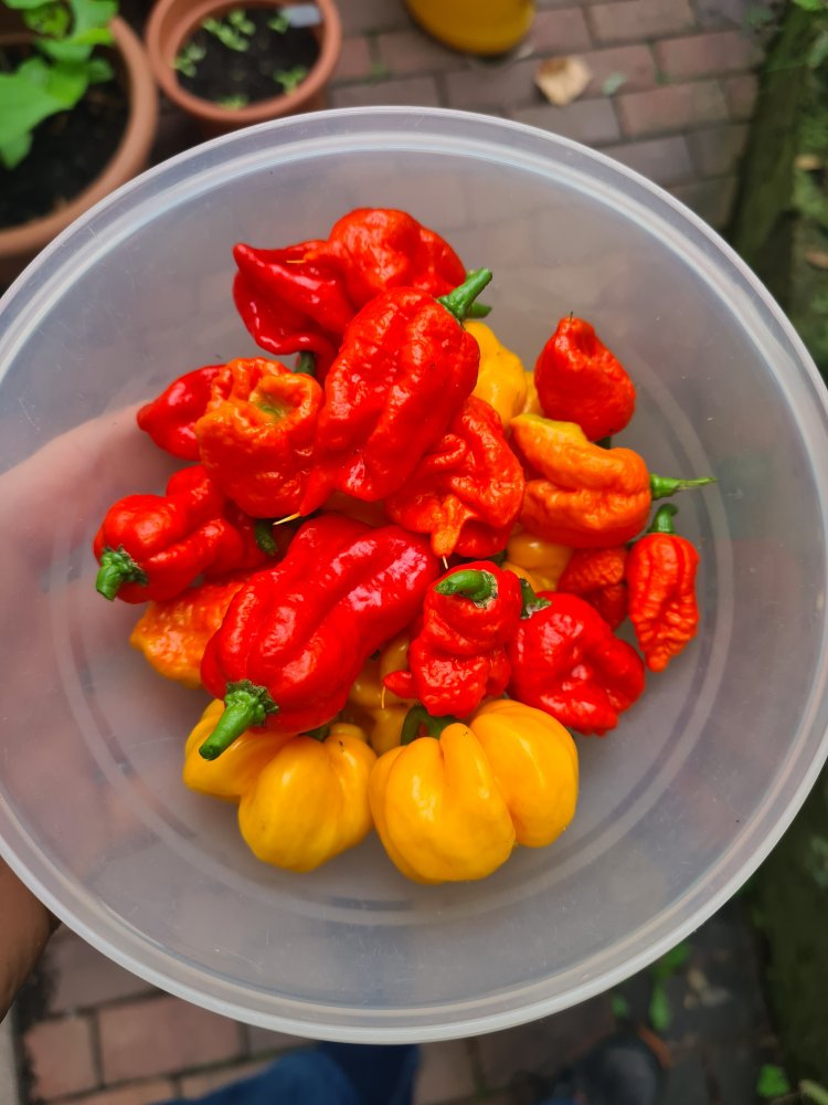 peter.bergmann schrieb: Welche Sorten hast du denn da geerntet ? Zum Vergrößern anklicken.... Carolina Reaper und Scotch Bonnet yellow
