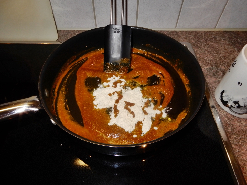 mit Mehl bestäuben und gut verrühren damit es nicht klumpt