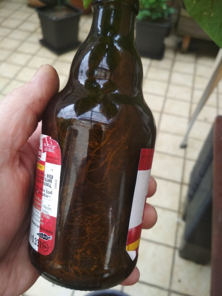 Bin mir noch nicht im Klaren, ob ich die Flasche zerschlagen und die Pflanze "normal" wachsen lassen soll, oder mich weiter mit der Pinzette abquäle...