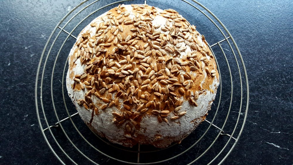 Was ich noch mache bevor das Brot in den Ofen kommt, ich ne Spritze den Leib mit Wasser und reibe ihn mit der Hand und etwas Wasser ein. Dabei drücke ich aucj ganz leicht drauf.@M+Y
