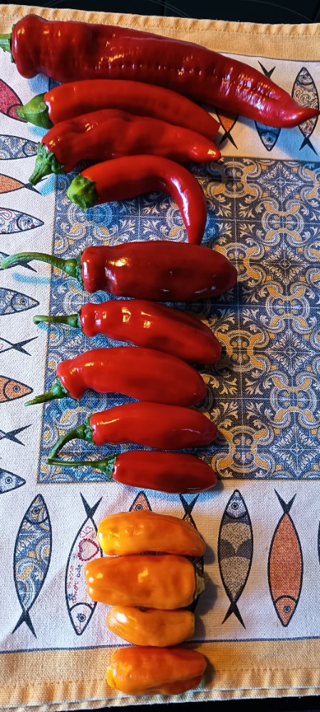3-4 hm, vielleicht bin ich auch zu weich gewordenIch habe diese Sorte dieses Jahr im Anbau (Samen aus dem Wanderpaket) - eine Pflanze im neuen GWH, das lange Probleme mit zu alkalischem Boden hatte und eine im ca. 20 L Topfe. Ich habe bisher nur wenige Beeren geernet, genauer am 5.7.25 2, am 26.7, 4, am 15.8. 1 und am 30.8. 3. Ich hatte die meisten verschenkt, 3 selbst verkostet - ich würde die Schärfe derer in Richtung 3 - 4 taxieren. Aber es sind noch einige an den Pflanzen, diesmal auf wirklich grösser, aber die sind teils noch grün.