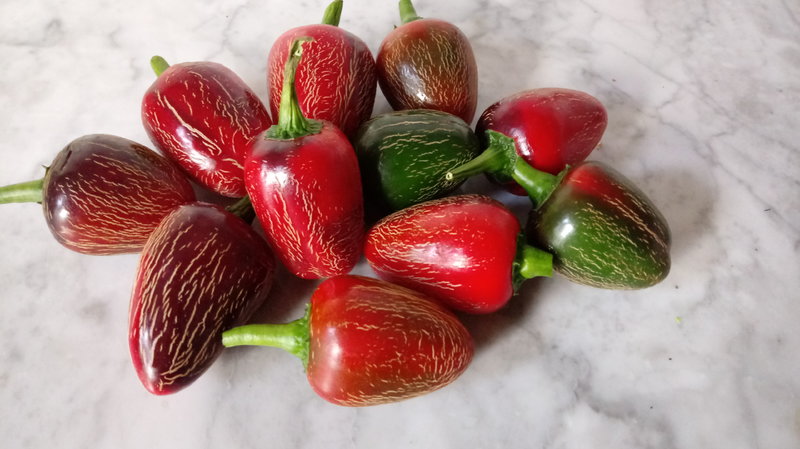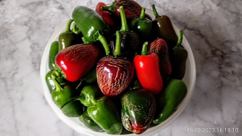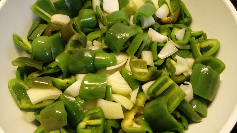 Die Rezeptgestaltung ist wohl in den einzelnen Regionen Mexicos sehr unterschiedlich. Auf Yucatan werden hier überwiegend grüne Jalapenos und Chile Poblano verwendet, dazu kommen noch Zwiebeln. Die Chilis werden nicht so stark angebraten. Da ich keine frischen Poblanos habe, wurden grüne Beeren der Rocoto P360 und Jalapeno Numex Primavera verarbeitet.