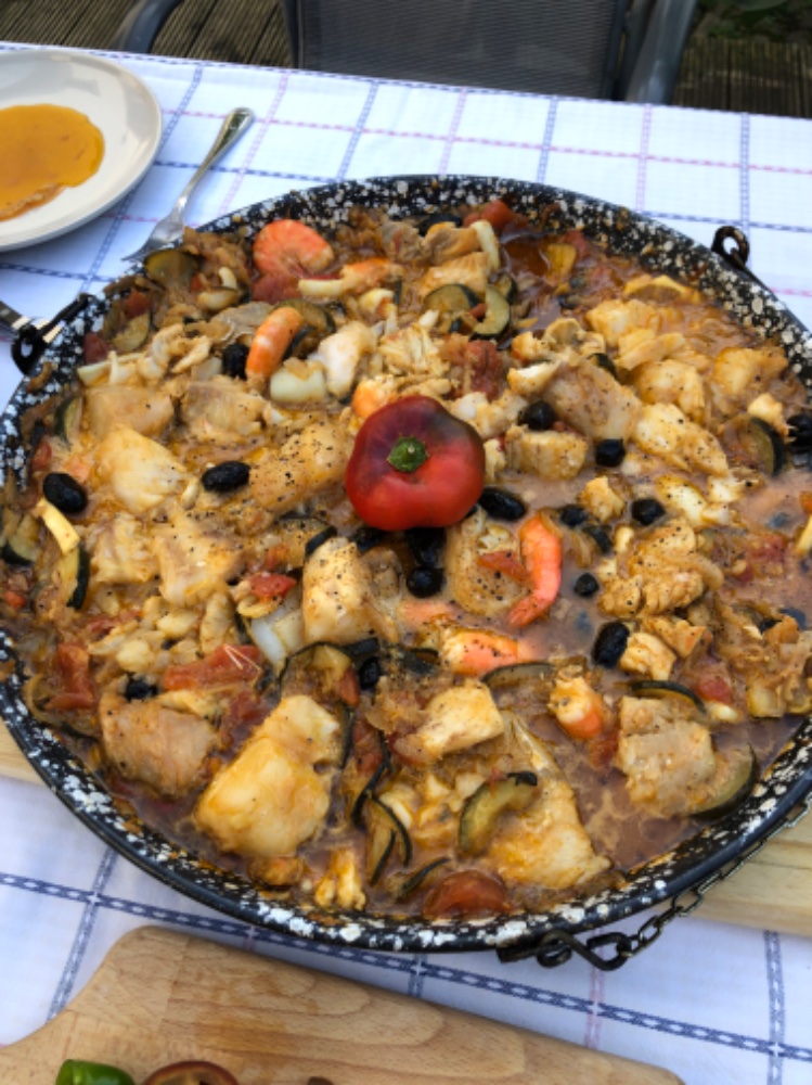 Am Sonntag dann wieder Schwenkereinsatz - diesmal mit Pimientos de Pardon und Kirschtomaten und etwas Fleischbeilage …