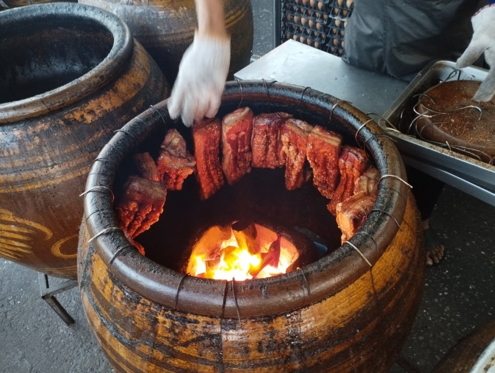 Unser Abendessen hier in Chiang Mai gestern abend, pork roast aus dem Tontopf, chicken, morning glory Salat und noch ein paar gute Sachen. Eine Empfehlung von Mark Wiens (Youtube). Super fein.