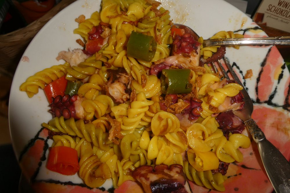 Hauptgang Nudeln mit Krake 😋(Krake schmeckt wirklich gut)