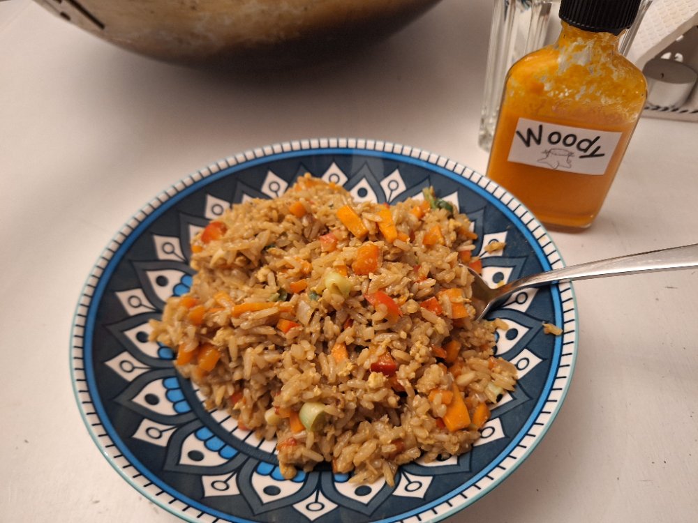nun nach 78 h das erste Essen, kleine "Chinaschale" (eigentlich für Tee), Reis, Olivenöl, geröstete Zwiebeln, eine wenigscharfe Cayenne, Peterle, Dill, Messerspitze Mushroompulver, kleiner klecks Ziegenbutter. Mal sehen was die Verdauungsmaschine dazu sagt nach dem Desaster