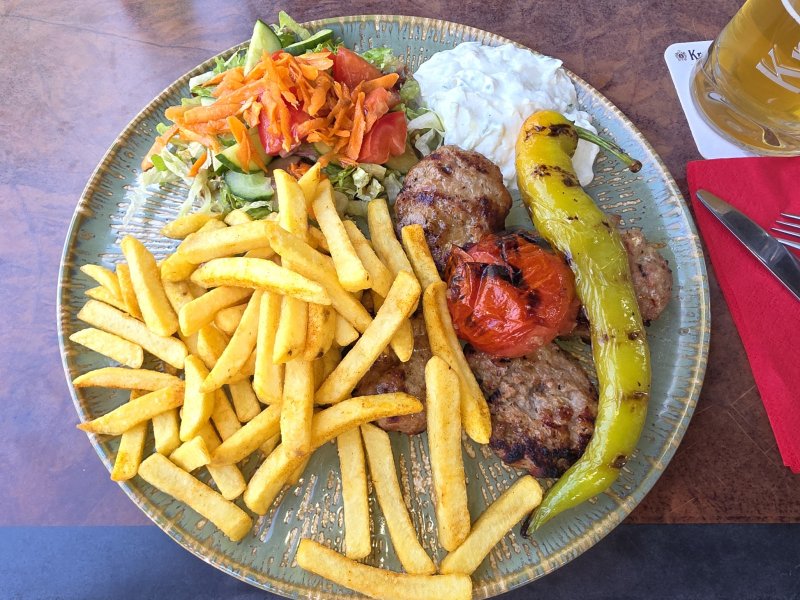 Heute haben wir auswĂ€rts gegessen, es gab Köfte im tĂŒrkischen Restaurant an unserem See.