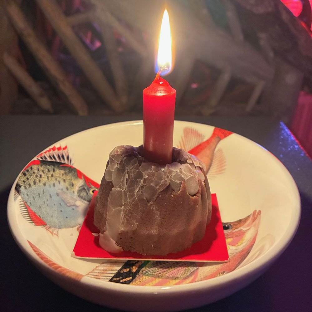 Darunter der kleinste Kuchen den es gibt um schonmal die richtige Richtung einzuschlagen