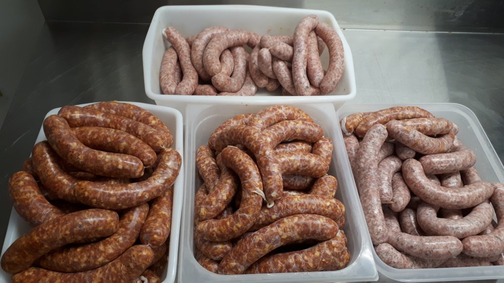 und grobe Bratwurst mit Majoran, auch in scharfer und nicht scharfer Variante