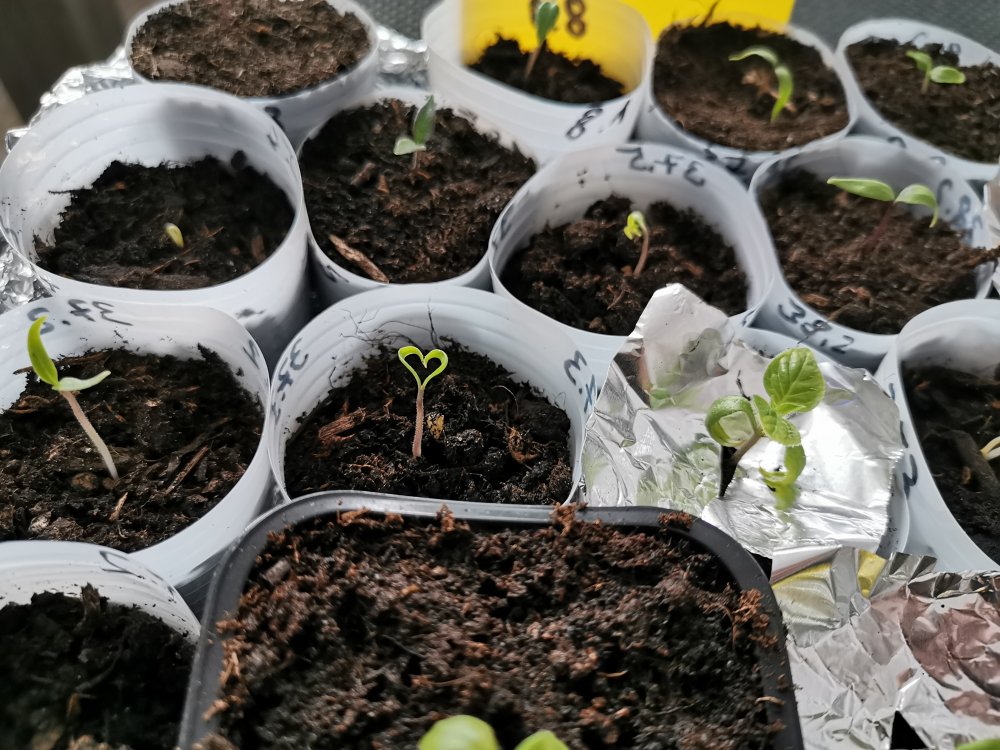 Ohje, was hab ich da angerichtet, 9 von 9, VolltrefferGestern Abend habe ich 9 TML Samen ohne vorzuweichen in die Keimbox geworfen, sie sahen etwas "verkrĂŒppelt" aus, deshalb lieber mehr als sonst. Als ich eben reingeschaut hab, hab ich gesehen dass schon 5 StĂŒck keimen.