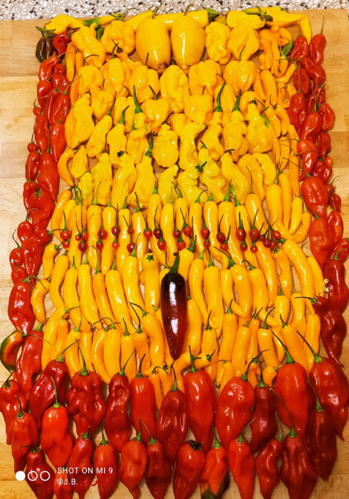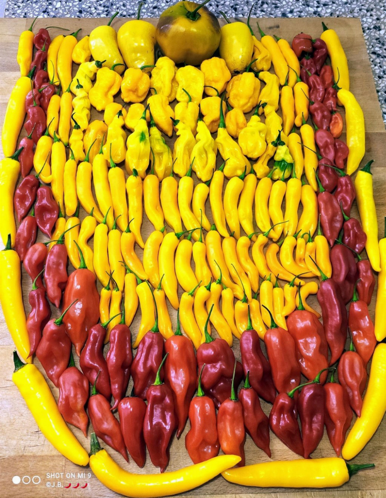 Indoor aus dem Chilihaus, Fatalii, Capsicum chinense und Rocoto Cabe Gondol, Capsicum pubescens: