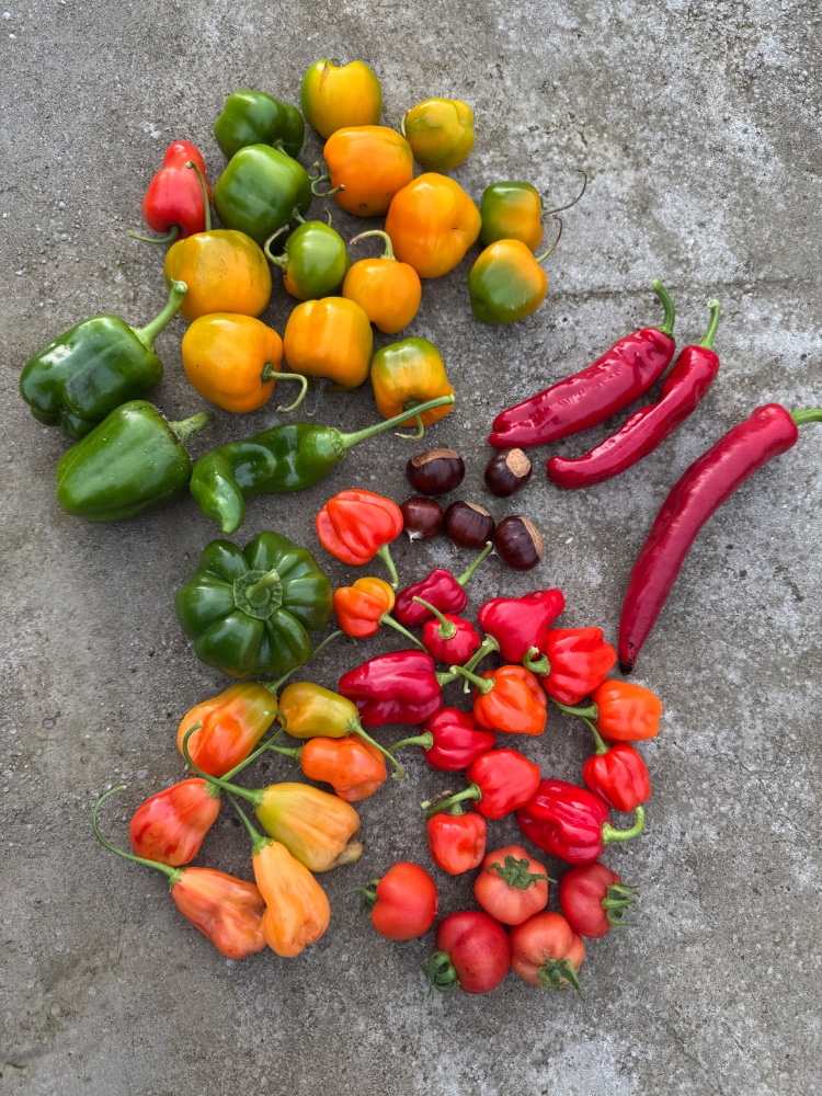 Vor allem die Esskastanien dachte ich zuerst watn dat fürne SorteEine kleine Nachernte gibt es noch. Grüne Jalapenos sind noch an den Pflanzen im Gewächshaus.