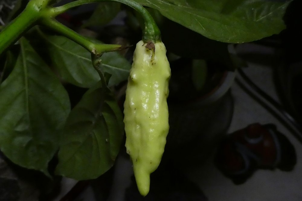 meine nun wirklich ALLERLETZTE Beere 2024, die Einzige Trinddad Moruga Scorpion die nach langer Nachreifezeit an der Kückendecke (noch am Ast) halbwegs gereift ist, die Frage, ob die Samen verwertbar wären?