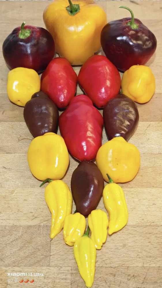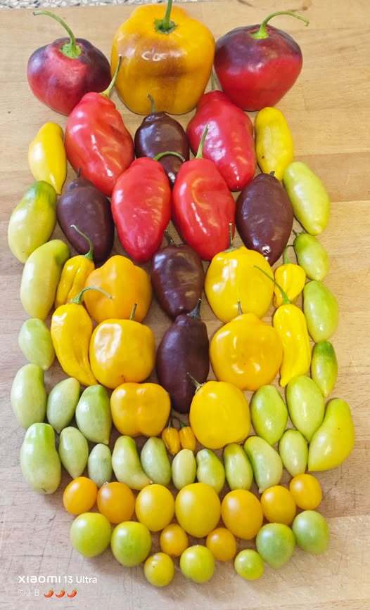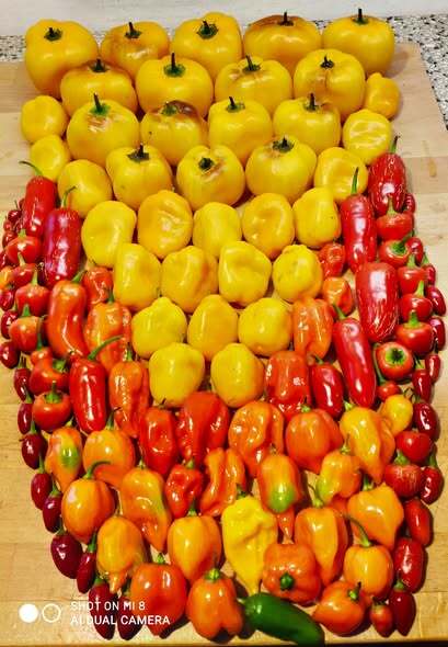 Zebrange und einige Dutzden Roccotos, (sehr schlecht gelaufen, die Hoffnung auf Nachreife, siehe gebündelte Äste, Herzlichen Dank an Peter Bergmann, von dem das Saatgut war. hätte gerne mehr raraus gemacht).