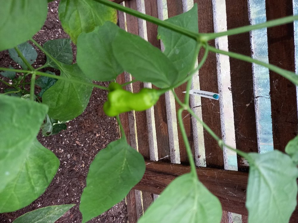 Gestern um 19:10 Name: Erotico Hot Pepper Art: Capsicum baccatum Herkunft: ? Quelle: Semi strani Blüte: weiß mit gelb-grünen Flecken Schärfe: 4-5 Fruchtfarbe unreif: grün Fruchtfarbe reif: orange Fruchtform: Fruchtgröße: Merkmale: Reifezeit: Wuchs: höhe ca. 90 cm Empfehlung Topfgröße: ab 11 Liter Zitrusgeschmack Zum Vergrößern anklicken....