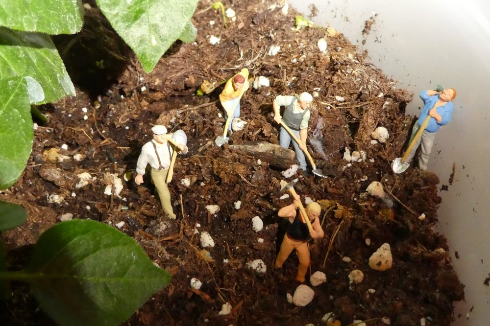 die Heinzelmänner haben heute überall die Erde aufgelockert und alte Blätter, Blüten u. a. weggeschafft,