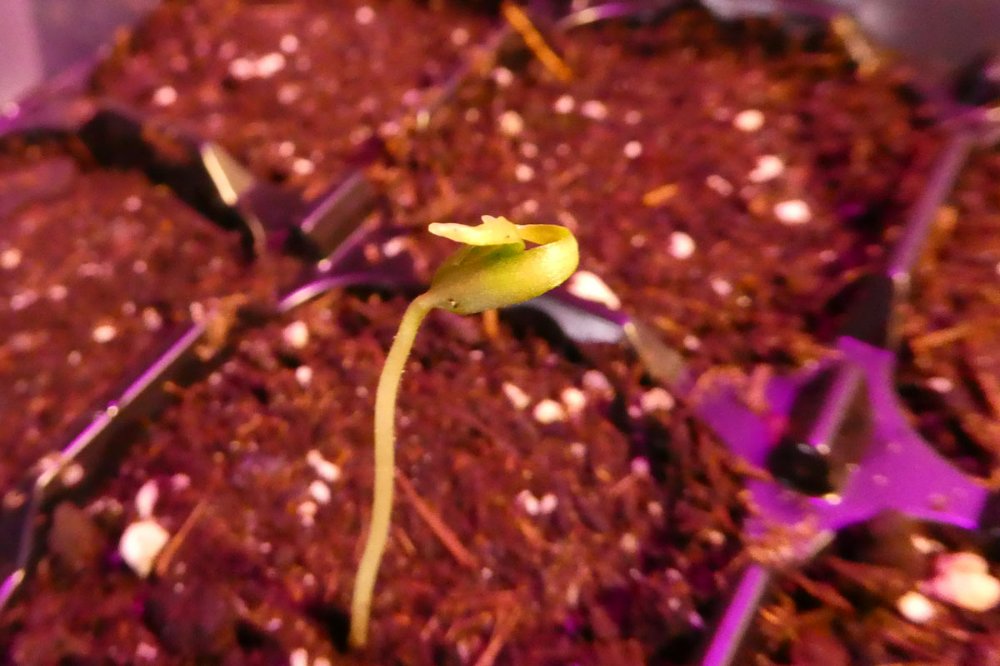 Da ist noch neben dem "Lila-Licht" noch stundenweiße Weißlicht zugeschaltet, davon abgesehen stehen die auf der Südseite wo die letzten Wochen sehr viel Licht eingefallen ist. Eine Takanotsume wächst stabil, was man sieht, die Bedingungen sind eben exakt gleich für alle, unterschiedliche Sorten. Komplett ohne Zusatzlich treibt die Bonsai Aji Charapita sehr stark aus unter dem gleichen besch...Licht 2023-2024 gabs da Null Probleme.