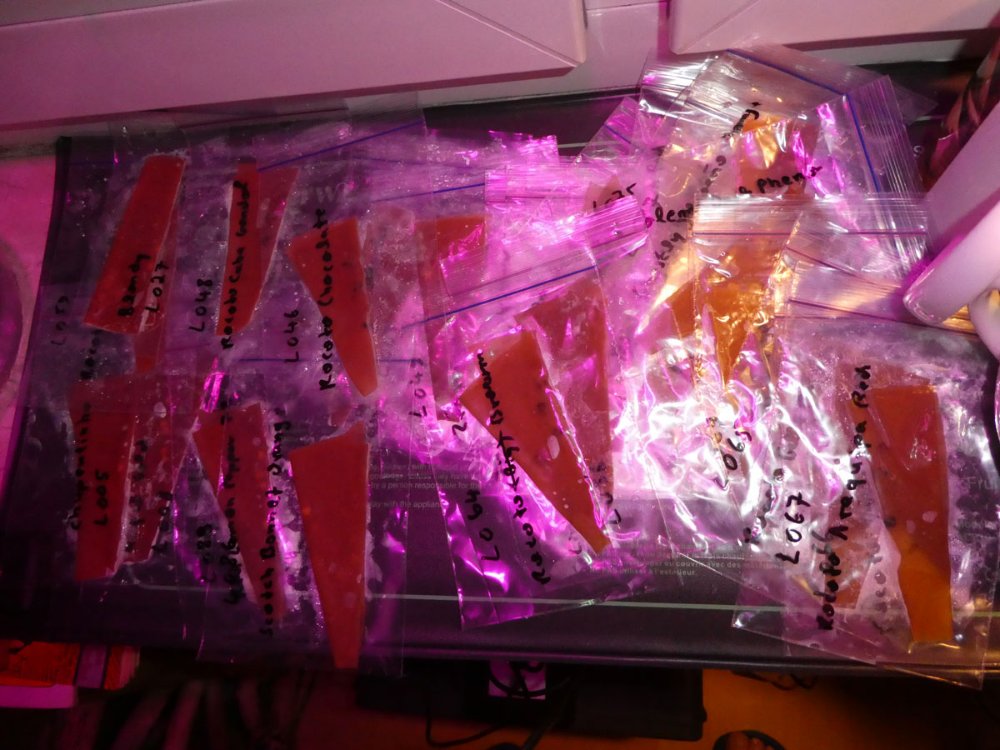 Heute 27 Sorten, a` 5 Samen zum Keimen in Zip-Beuteln angesetzt, Unterschalen wurden heute auch gekauft und alle Töpfe mit Drainage ausgestattet,
