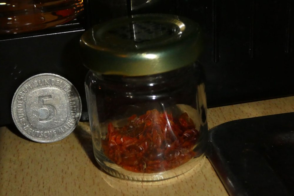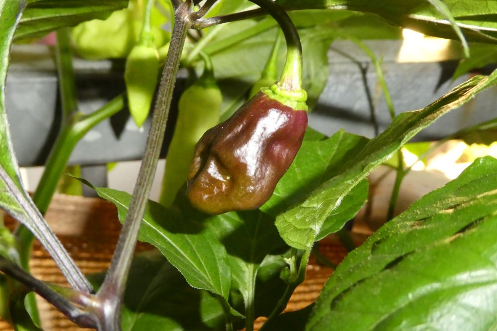 So wie es aussieht werden 2025 wieder viel grün geerntet, die werden dann geräuchert z. T. schon heute Wetterumschwung, gestern schon Sturmböen, Gewitter, die friesige Baumchili habe ich eigenhändig festgehalten, die hat sogar gegen das Fenster geschlagen