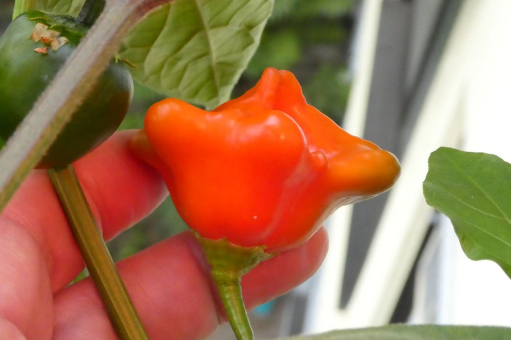 Schärfe wird mit 7 beschrieben, die Leute die dort werkeln wissen selbst nicht was das ist. Die Pflanze ist recht niedrig, etwa 35 cm hoch nur.