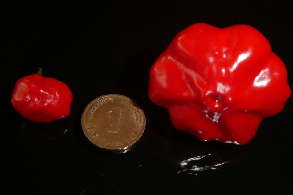 eben verkostet, nur wenig von der Spitze, bestimmt mindestens eine 10, nix zu snacken, schmeckt (sehr kurz) fruchtig, fast schon süßlich, das vergeht aber einem sehr schnell und wird von der beißenden Schärfe übertüncht, vor allem im Rachen. Als Sorte ist die meine ich nicht in der Galerie.