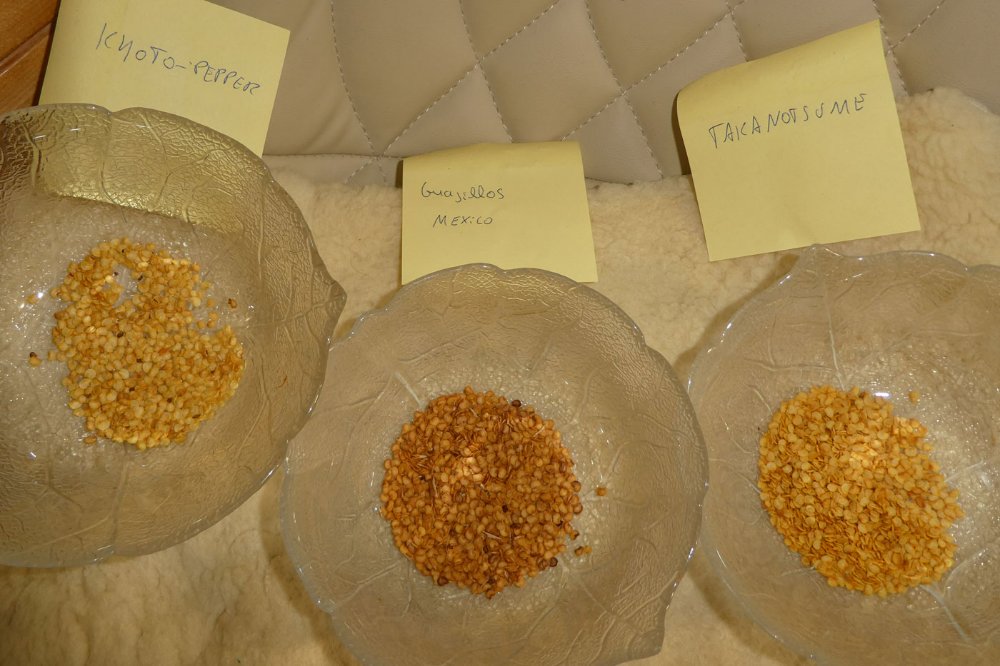 Die Mexikanische Sorte und Takanotsume kamen mir viel gelbroter vor (Saatgut), offensichtlich wurden diese wahrscheinlich unter Hitze getrocknet.