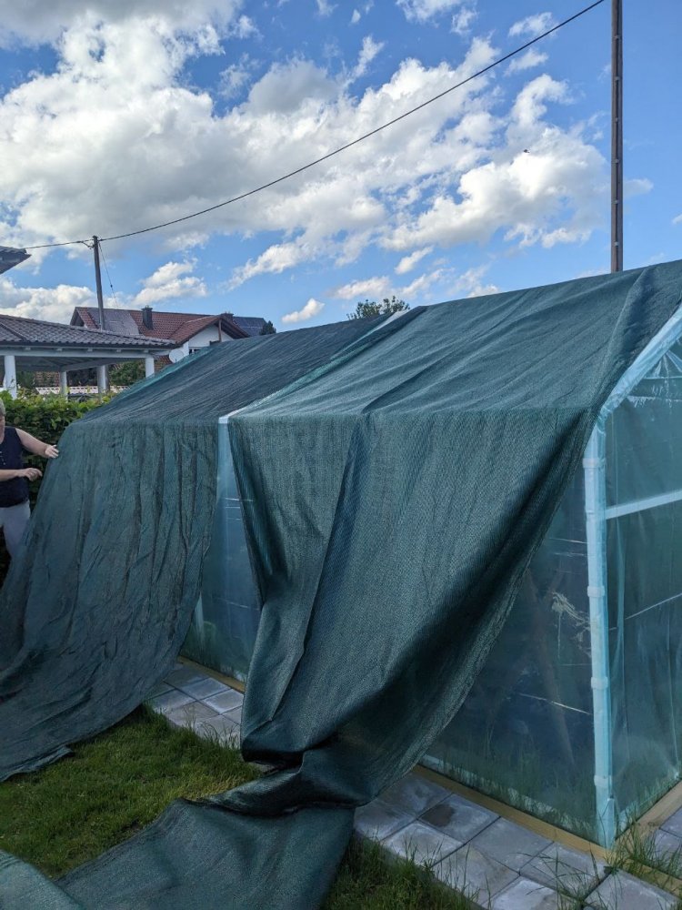 Wenn du da gute Produkte für Belüftung kennst - teile es mal bitte mit - ich hatte es letztes Jahr mit einem kleinen Solaranlage und eine kleiner Lüfter versucht aber das ist nur ein Lüfter wie er früher bei pcs eingebaut war - der bringt nur sehr wenig - bei mir waren es heute auch 35 grad in beiden Gewächshäusern