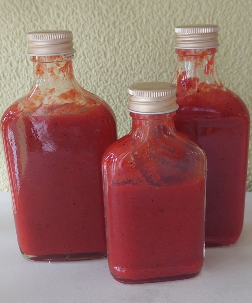 Seit letzter Zeit mache ich sehr gerne eine Sriracha-Sauce aus einem Jalapeno/Rocoto-verschnitt