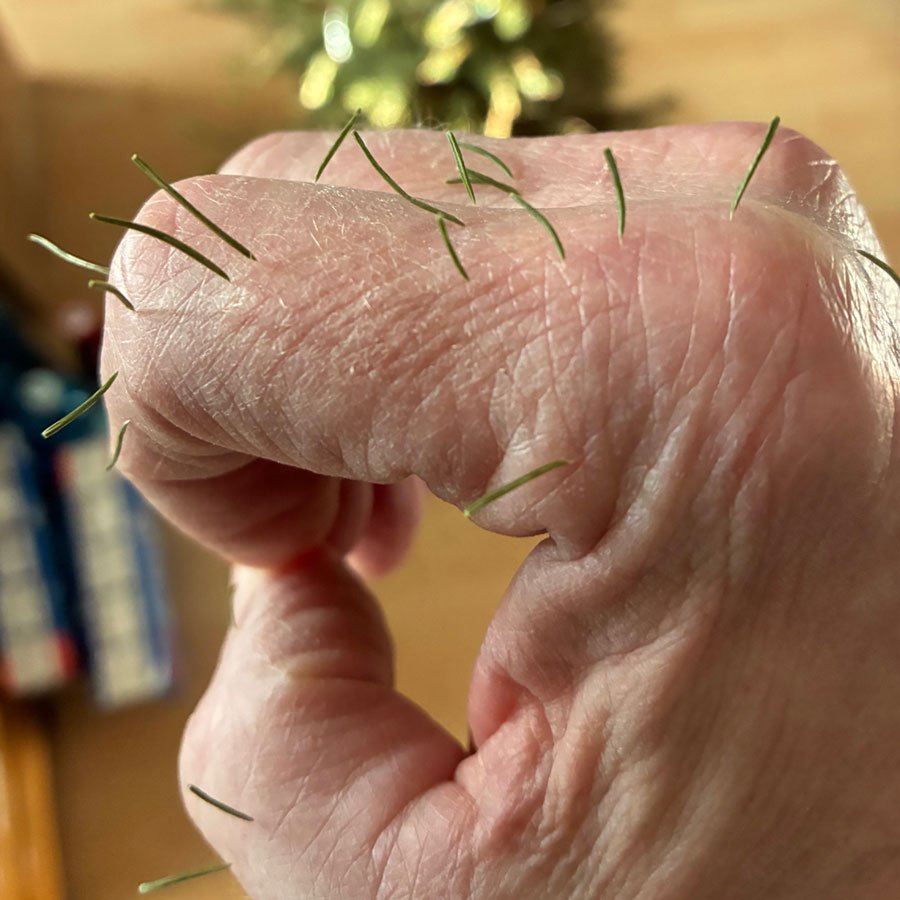 Gut, dass es in einem Arbeitsraum ist, denn jetzt muss der Schrank ein paar Tage offen stehen bleiben. Das Wasser ist durch das Loch für das Absperrventil in die Arbeitsplatte reingezogen. Glücklicherweise ist nichts aufgequollen. Es muss aber schnellstmöglich wieder trocken werden, damit die Arbeitsplatte nicht kaputt geht. Im Schrank ist nichts passiert. Es standen zufällig Eimer günstig unter der Stelle, durch die es durchgetropft hat. Eine Zeit lang war es nur wenig Wasser, was so schnell wieder verdunstet war, dass es nicht aufgefallen ist. Pünktlich kurz vor Weihnachten war dann nach der zweiten Waschmaschinenladung alles nass.