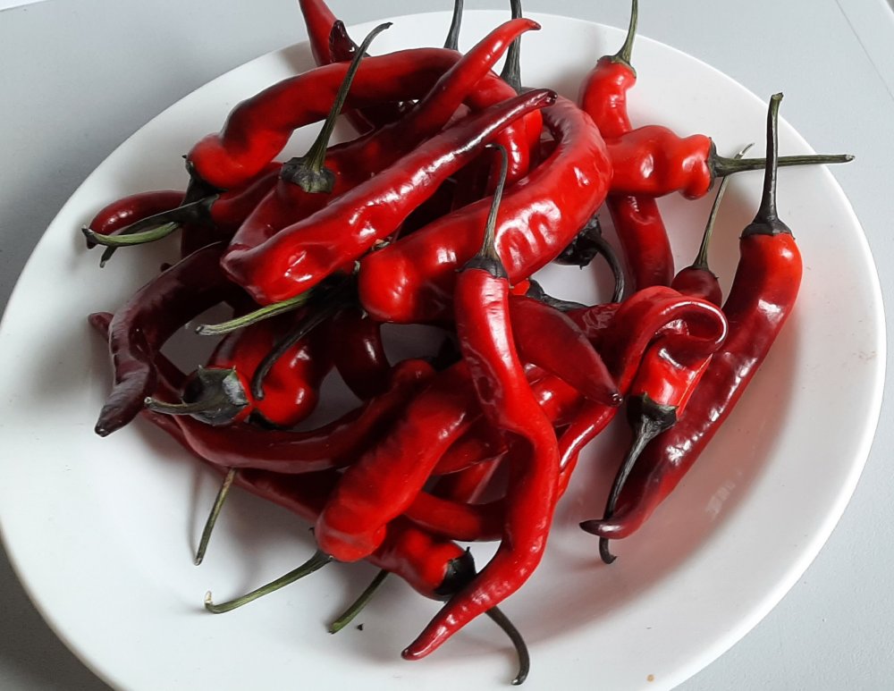 In der einen : Large Red Baccatum, Champion, De Cayenne, Sri Noom, Cabai Melaka und Hawks Claw