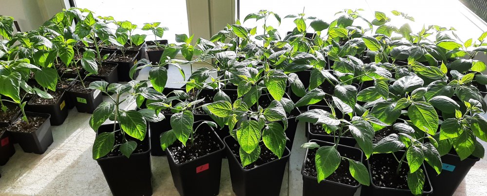 Die Rocotos ziehen zwar Mitte nächster Woche in das Dachgeschoss unter zwei Velux Fenster aber der Platzgewinn ist nur von kurzer Dauer. Den Baccaten und Chinensen kann man gerade beim Wachsen zusehen. Es wird also wieder einmal höchst abenteuerlich in den nächsten Wochen.