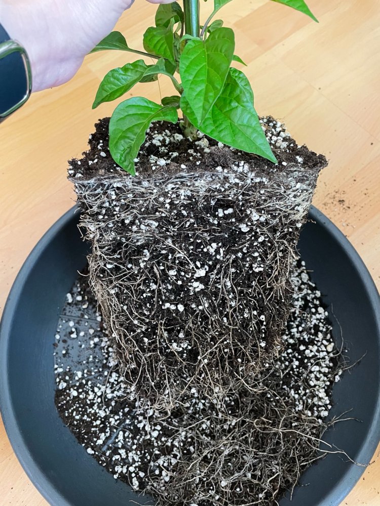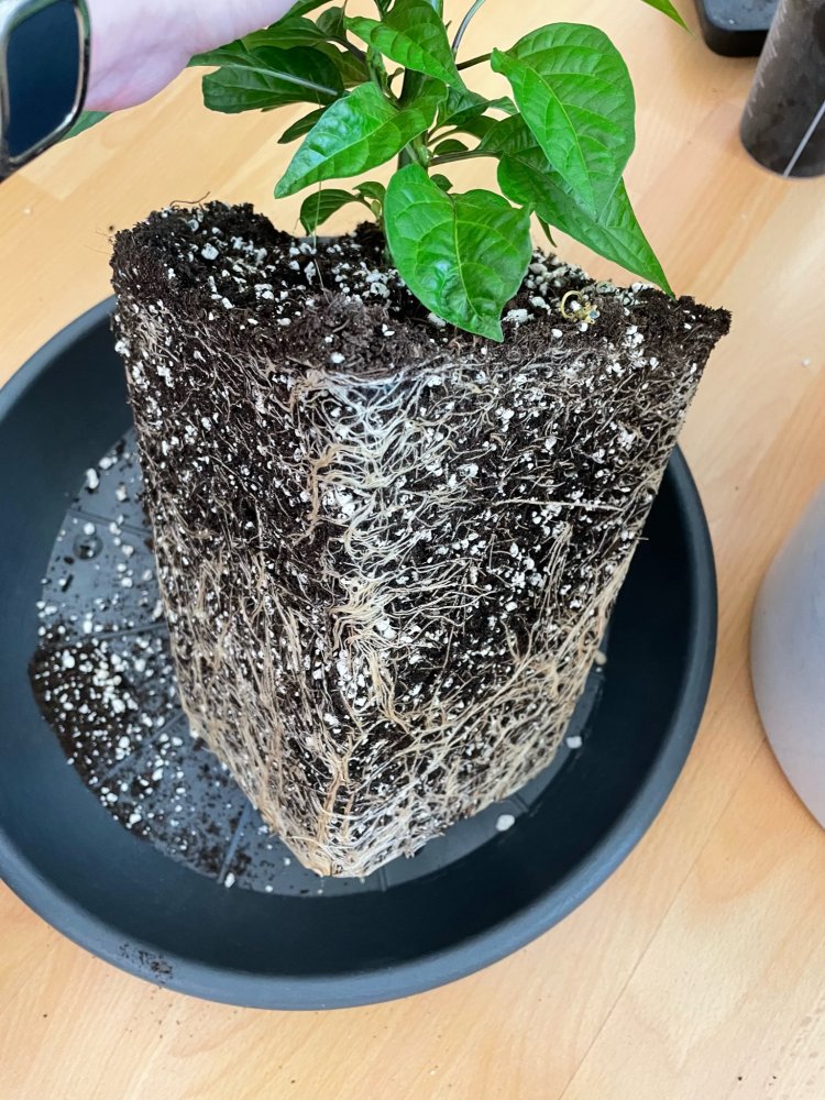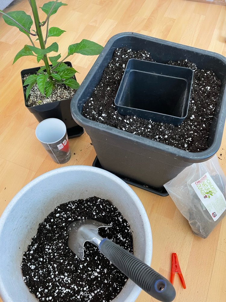 Die erste Pflanze (Habanero Red) hat es geschafft und wurde gestern in den Endtopf gesetzt: