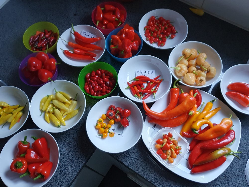 Endlich komme ich dazu, meine Chilisaison im Forum zu beenden. Trotz dem nicht wirklich idealen Wetter konnte ich von einigen Sorten ernten, während andere wie die Rocoto Manzano oder auch die Peachadew oder die Bishops Crown nicht mehr reif wurden und ins Hausinnere zügeln durften, um noch auszureifen. Nun, da alle Chilis getrocknet, eingefrohren oder sonstwie verarbeitet sind und die Samen getrocknet und verpackt sind, kann das nächste Chilijahr beginnen. Umsomehr, als mein Fazit für das Chilijahr 2024 lautet: Für das nächste Jahre früher beginnen.......