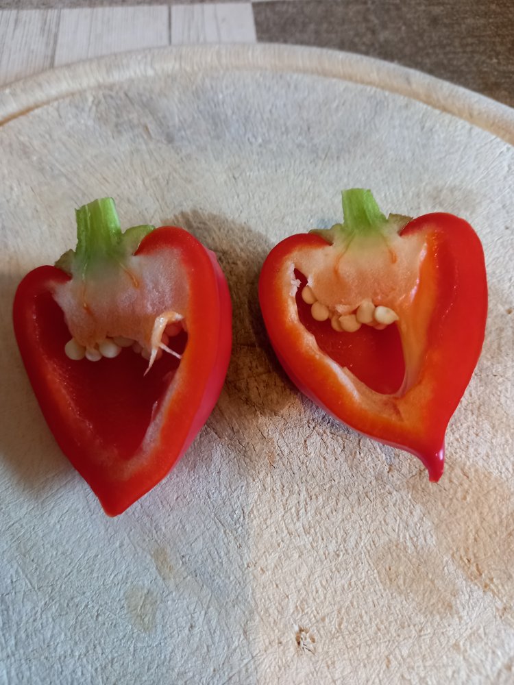 Aus dem tiefsten Bayern kommt diese gelbe Spitzpaprika, Bavarian Jumbo. Es handelt sich dabei um eine Züchtung von Johannes Mandl. Dessen Opa hat bereits über 20 Jahre eine gelbe Spitzpaprika angebaut und diese wurde mit der Spitzpaprika ´Kyra´ gekreuzt. Die Sorte wurde erst 2 Saisonen selektiert, es ist also durchaus möglich, dass es noch zu Änderungen der Früchte kommt. Meine Früchte gleichen aber denen von Johannes.