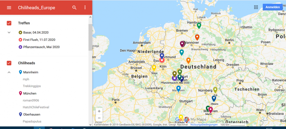du sieht die Chiliheads als Pins und die Treffen als Sternchen:
