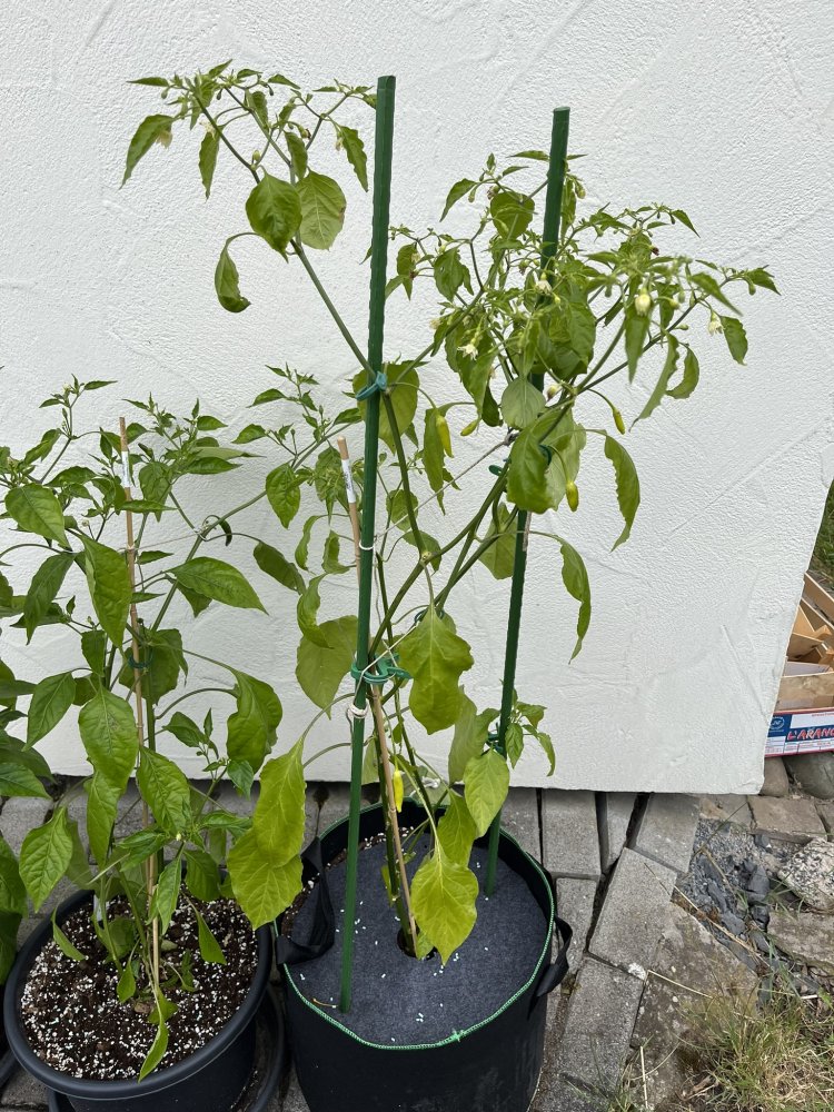 Meine Aji Golden trägt einige sehr schöne Früchte, die ersten müssten bald reif werden. Leider auf Kosten des Blatt/Pflanzenwachstums.