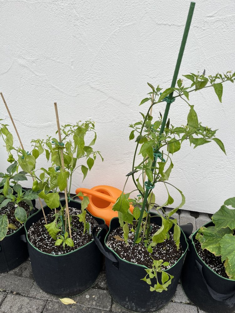 Die Rocotos stehen seit bestimmt 4 Wochen unter dem Dach an der Nordseite. Sonne dort nur bis 10 uhr schätze ich. Sie sehen mittlerweile sehr gesund aus und wachsen wie verrückt. Oculto und gelbe Riesen waren nahezu tot und haben sich vollständig erholt.