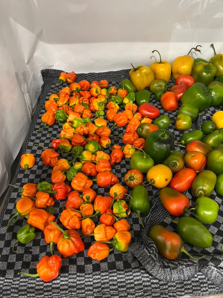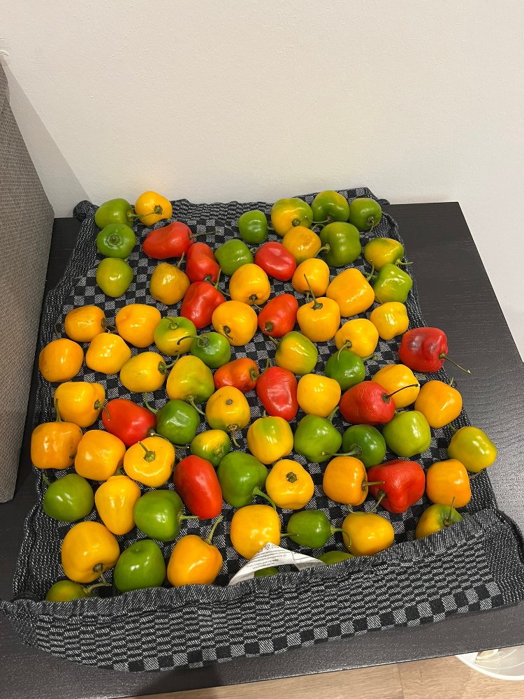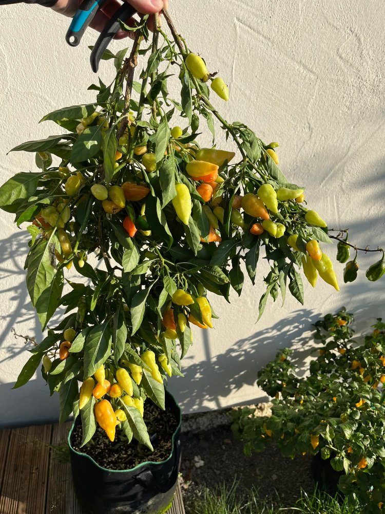 Am vergangenen Samstag hieß es dann Saisonende. Zumindest im Garten meiner Mutter. Einige Chinensen, meine Jalapenos und meine Aji Pineapple konnten dabei nochmal ordentlich geerntet werden. Die Habanada war in ihrer zweiten Runde leider noch nicht ganz so weit. Aber schaut viel voll nur dieser eine Zweig hängt