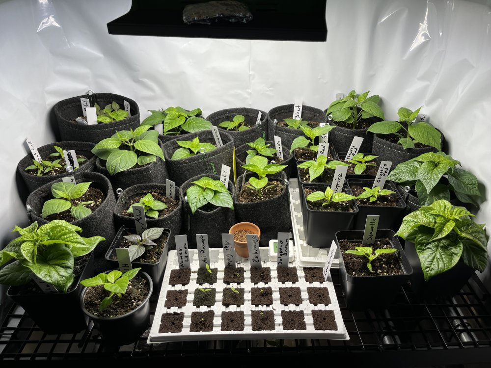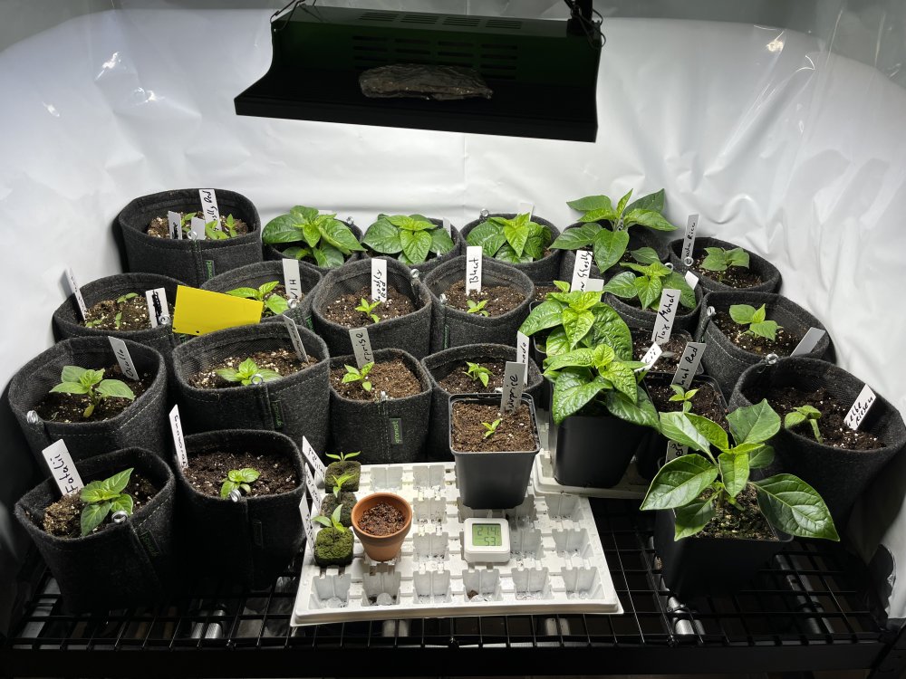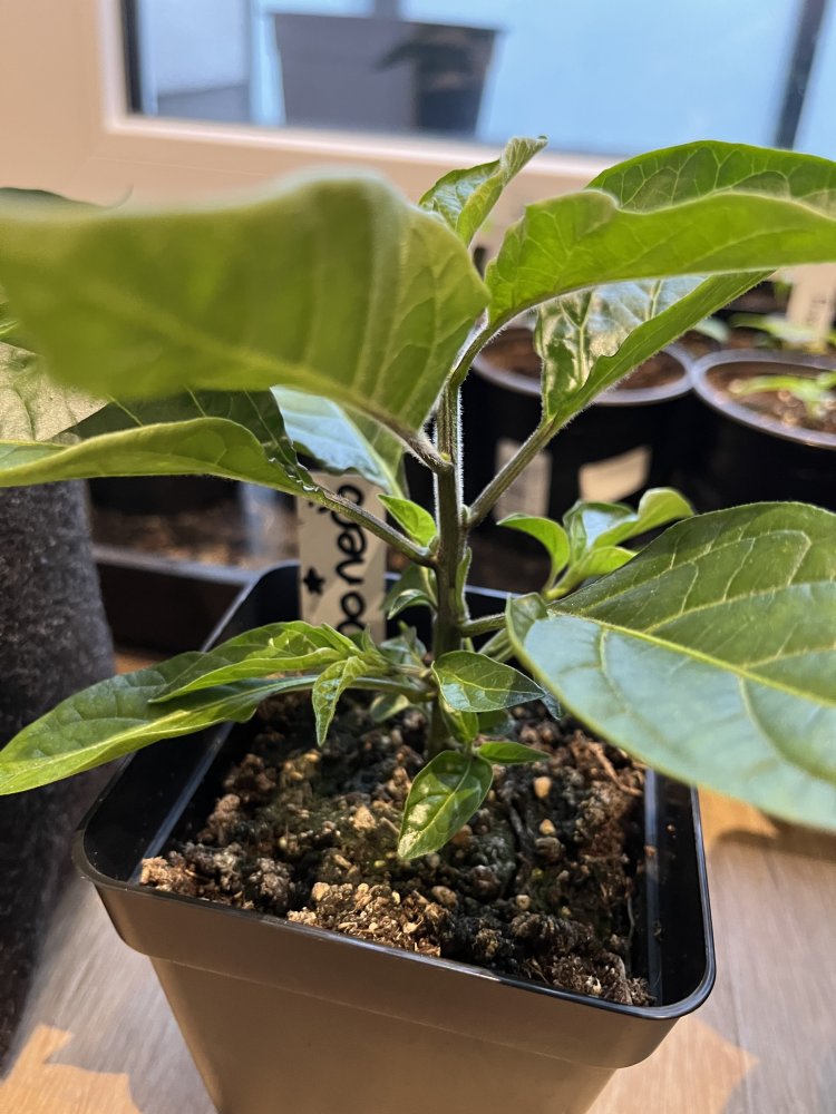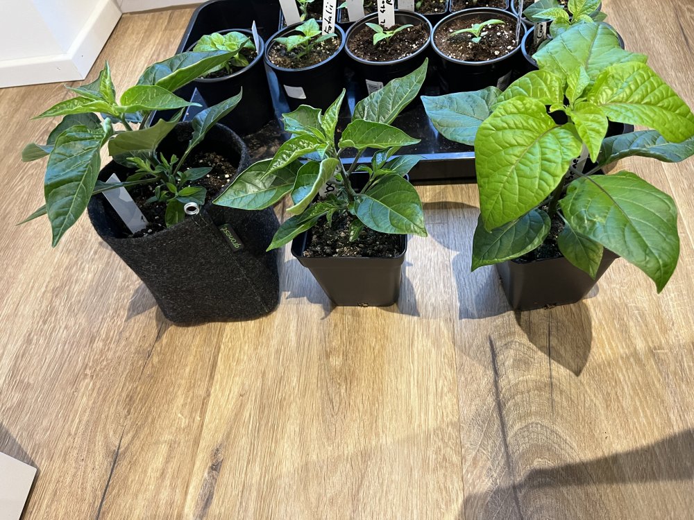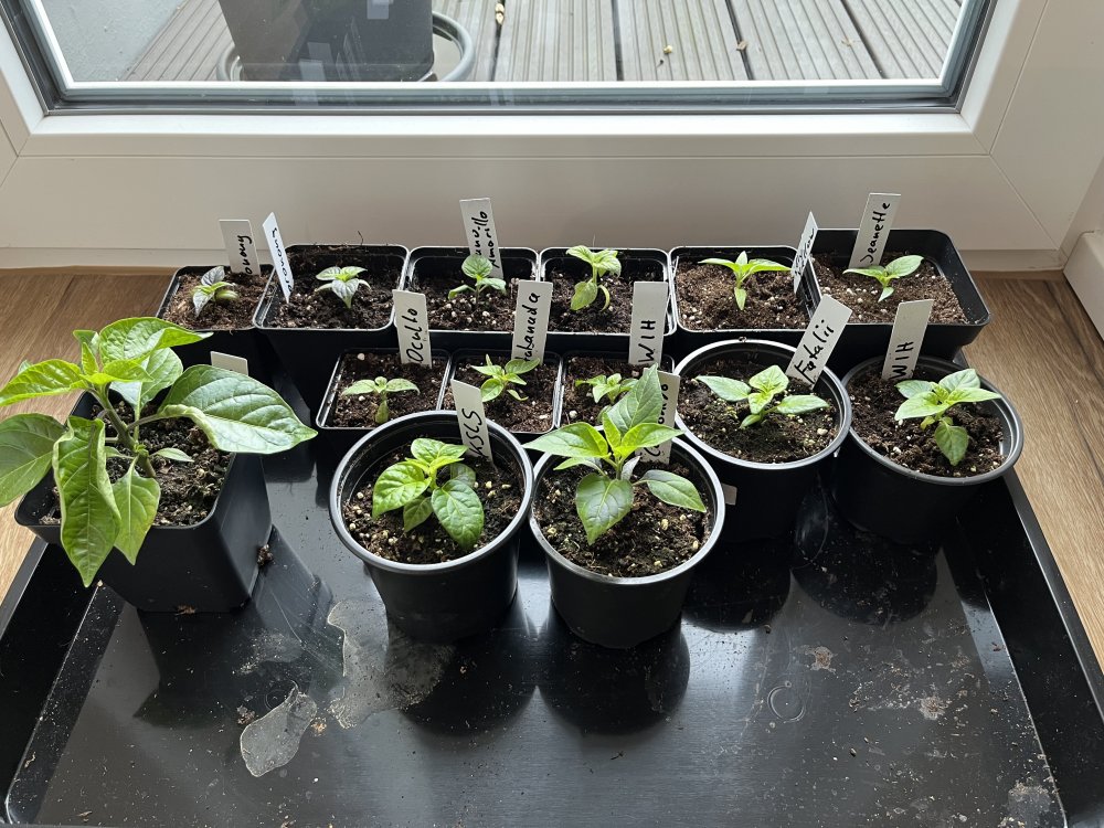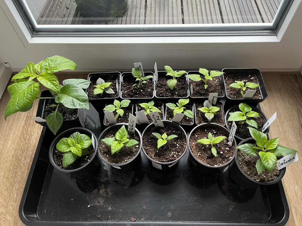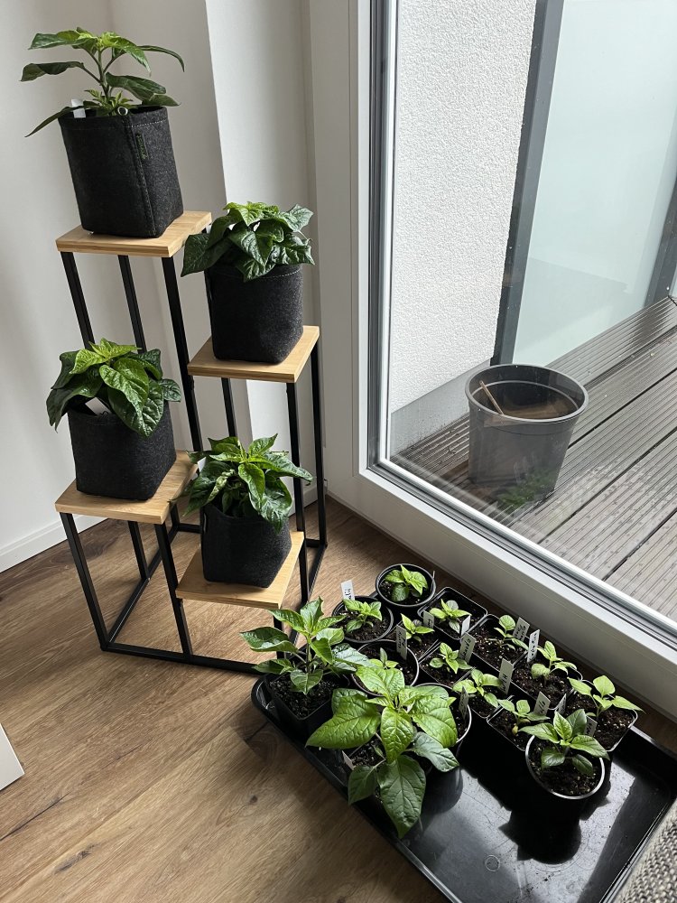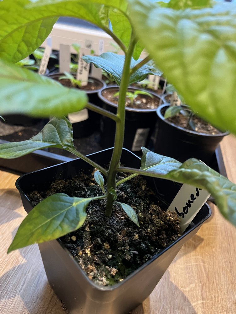 Ich habe drei Carboneros, eine im zwei Liter Stofftopf, zweie im 11x11 Topf, alle in Floragard Chili Substrat. Entwicklungsstand war bei allen gleich, als ich eine der drei Pflanzen vergangenen Montag ans Tageslicht befördert habe.