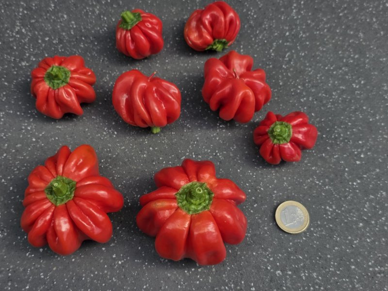 Ich habe übrigens mal eine Habanero El Remo zu meinen Dulce Costillón geerntet und ein paar Vergleichsbilder gemacht: