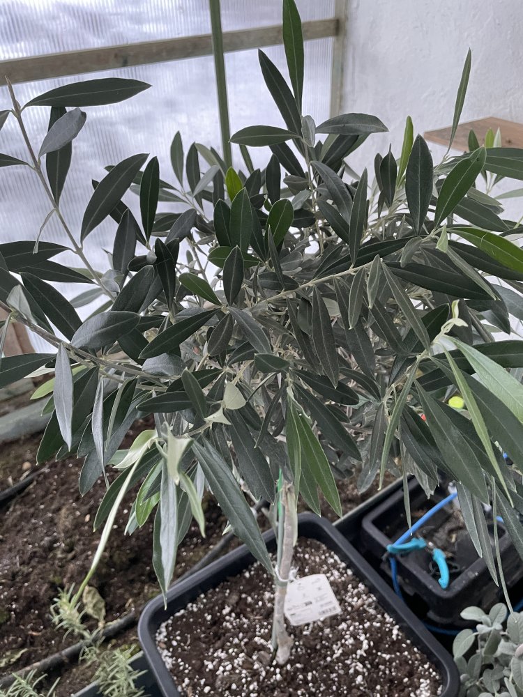 Immerhin geht es trotz der Temperaturen von zuletzt nachts bis -9°C den wenigen Überwinterern im Gewächshaus (Olivenbaum, Salbei und Rosmarin) noch gut.