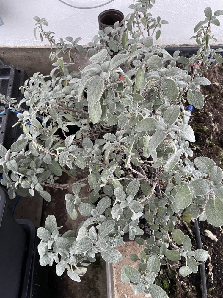 Der Salbei muß geschnitten/geteilt werden.Das Gewächshaus in Kerben im Schnee. Für den nächsten Winter muss ich mir eine bessere Abdichtung zu den Dachplatten einfallen lassen. Da zieht es leicht durch, was das Beheizen schwierig macht.