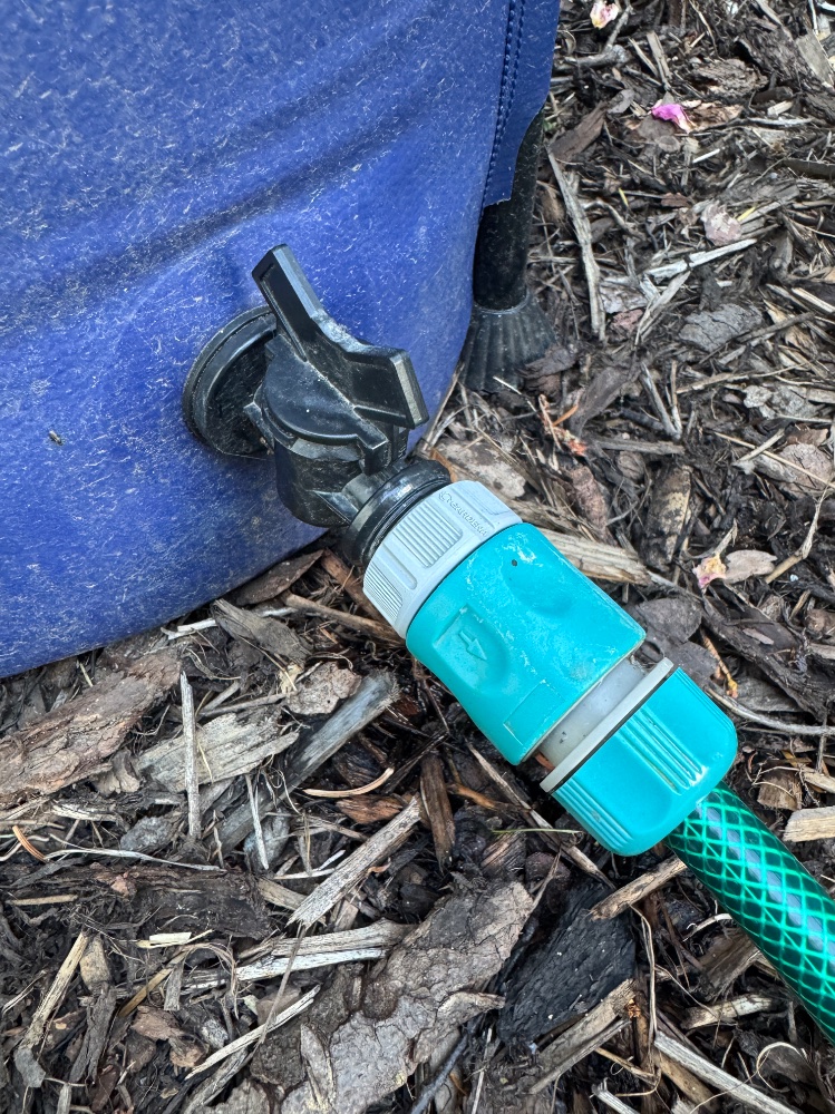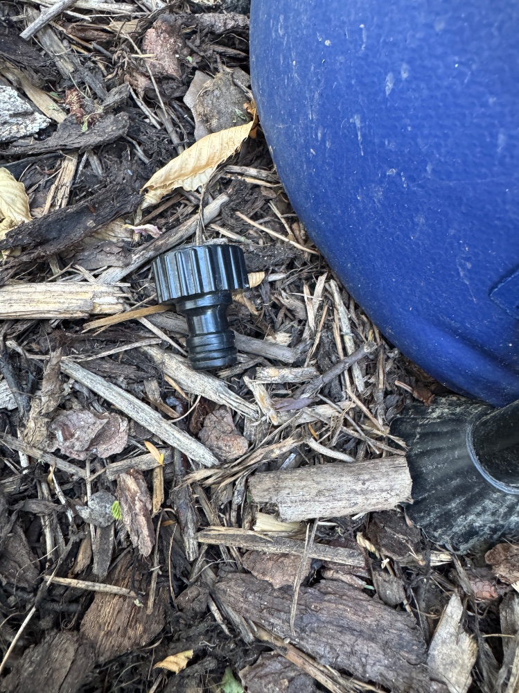 Dieses Teil hat einen Riss in der Verschraubung. Dadurch läuft das Wasser weg. Ersetzt habe ich es durch ein Teil von Gardena, das aus einem helleren und dickeren Plastik ist.