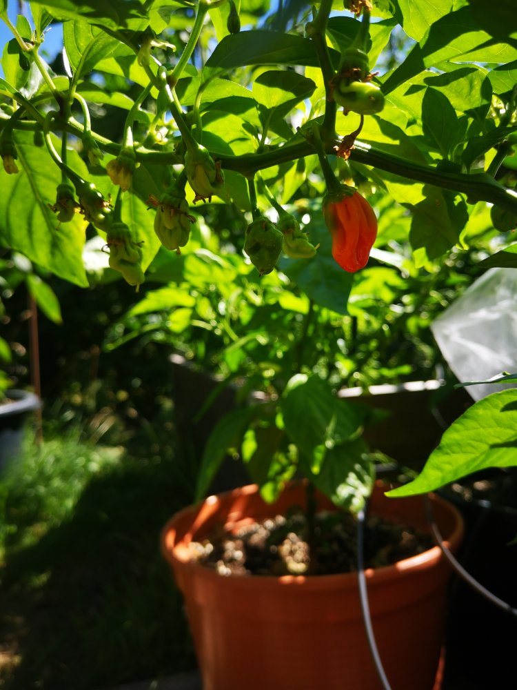 Die Habalokia White hat sich richtig gut erholt und sieht jetzt wieder sehr gesund aus. Das warme Wetter hat gut getan und sie ist gut gewachsen und setzt auch an. Wird ein Kandidat zum überwintern. 3 verhütete Beeren hängen auch dran. Samen der Sorte werde ich also bei Interesse im forum verteilen wenn es soweit ist.