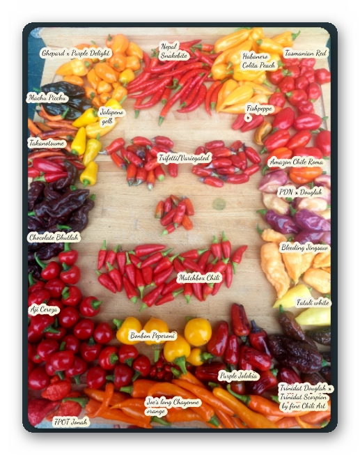 Hmm, die Puno Amarillo müsste eigentlich wesentlich spitzer sein. Die Form passt nicht so zu 100%.Am Wochenende wirds wohl die erste größere Rocoto-Ernte geben.....Rocoto Puno Amarillo......Rocoto Peron Rojo.....Rocoto la selva Rojo Arequipa....Rocoto Montifar...und vielleicht noch ein paar andere, wenAnhang anzeigen 34585Anhang anzeigen 34586Anhang anzeigen 34587Anhang anzeigen 34588n das Wetter herhält...![]()