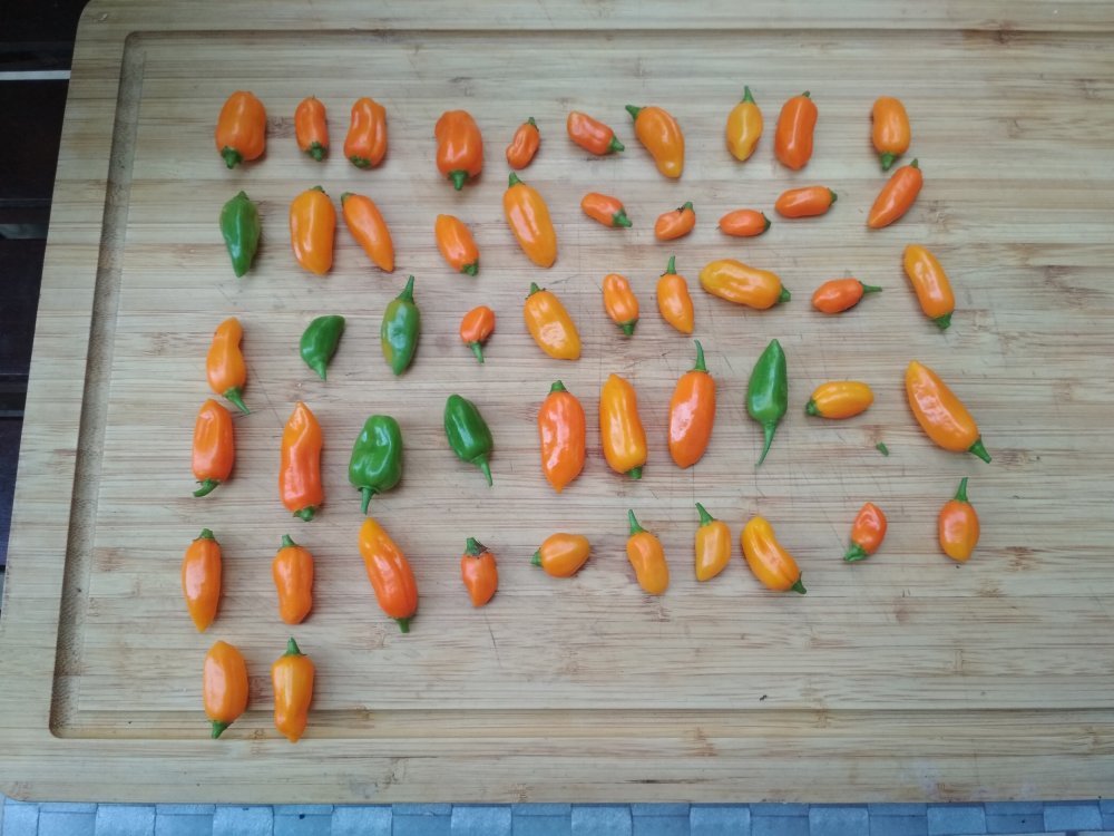 Vorhin habe ich mir je ein Schüsselchen Cream Fatalii, Habanero Pastel und Habanero Peach gepflückt.