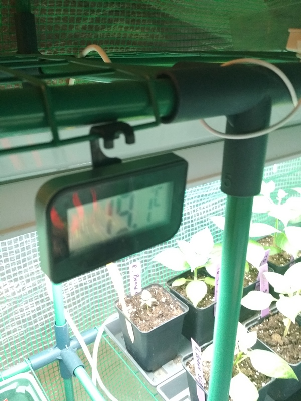 Hier muss ich dann auch mal eine Anmerkung zu den neu eingesetzten LED-Leuchmittel für die LSR-Armaturen einbringen: die tragen so gut wie gar nicht zu einer Erwärmung bei, ich hab somit leider keine Nachabsenkung und in verbindung mit der im Raum auf unterster Stufe geschalteten Heizung 24/7 so um die 19 Grad... mal schauen, ob ich mir was überlege... Heizung aus und horti-geswitched einen Heizlüfter schalten ???