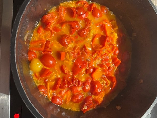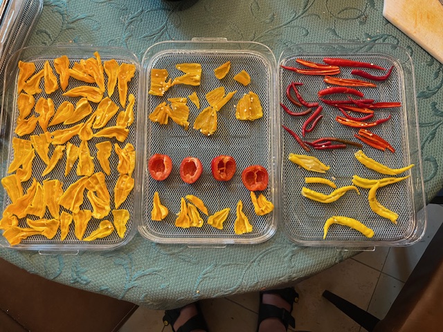 Die Peterschili? Sind die so dick? in der Mitte, jedenfalls da stimmt sogar der AnfangUnd geerntet wurde heute aus ein bisschen. Da wird morgen Verarbeitungstag sein.