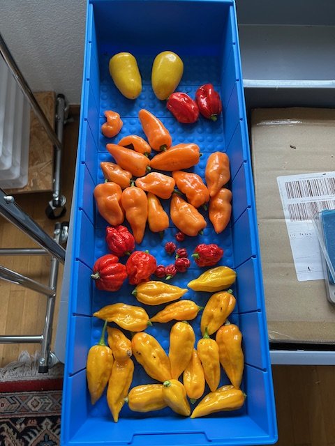 Projekt Feigensenf und 2. Batch Feigenkonfiture mit (etwas mehr) Chili wird heute Abend gestartet. Vermutlich nehne ich Aji Largos. Bei dem ersten Batch schmecke ich kan Chili raus.